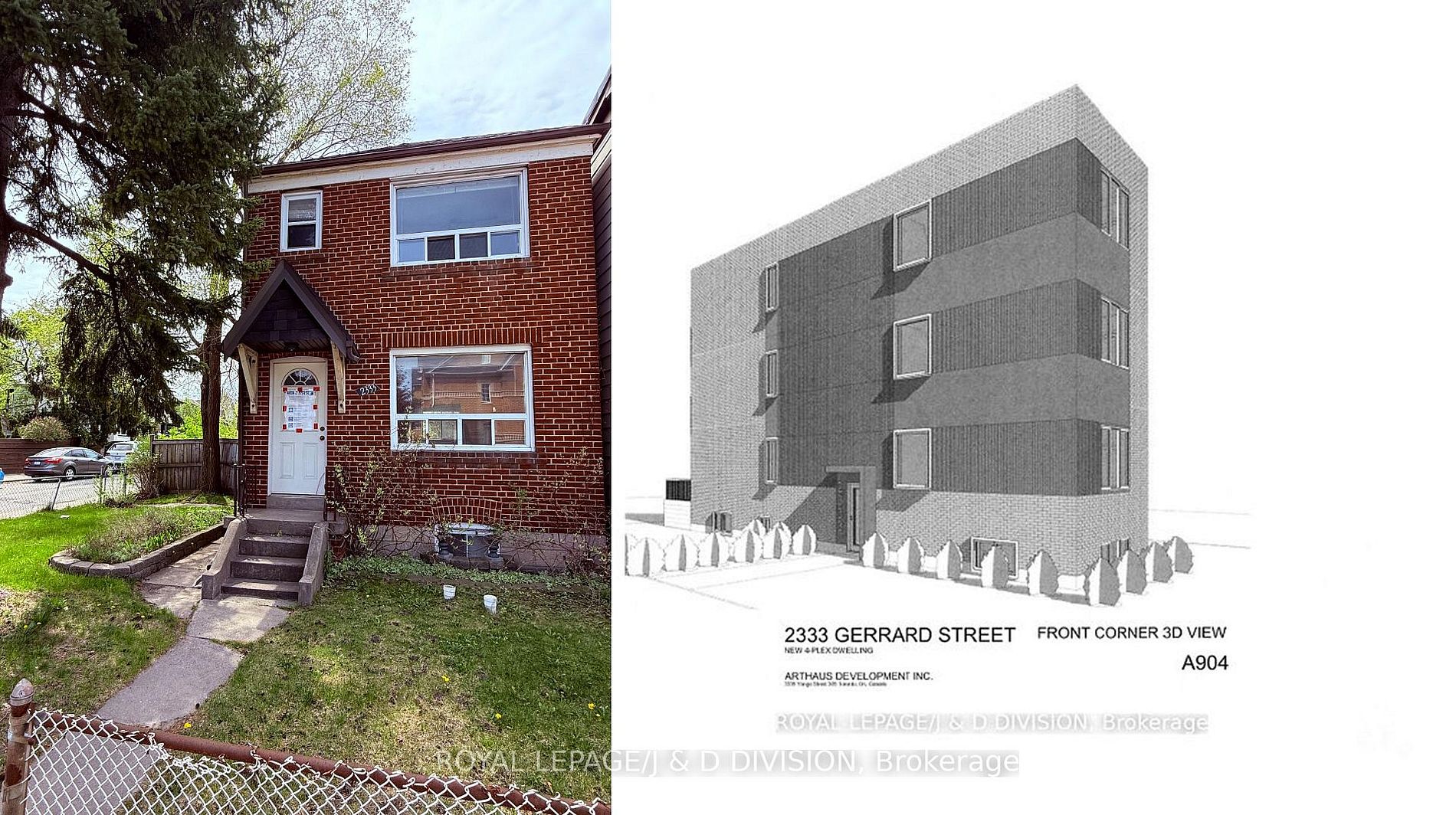 Stop dreaming and start digging. This is a rare, fully vetted development opportunity at the corner of Gerrard and Hannaford, where the "heavy lifting" of the Committee of Adjustment is already complete. Approved for a sleek, legal four-plex (3 x 2-bed/den and 1 x 1-bed) designed by ArtHaus Developments, this site is primed for a building permit application.The 150-foot deep corner lot offers a significant advantage: while current approvals do not include auxiliary buildings, the site's dimensions are tailor-made for a substantial laneway house-adding a potential fifth stream of income to this high-demand residential pocket. Secure Cash Flow While You Plan: The property currently generates $3,200/month plus utilities from exceptional tenants (lease ends Aug 31, 2026), providing a stable carry while you finalize permits and trades. All architectural plans, COA approvals, and design files paid for by the Seller are included. This is a turnkey transition for an investor looking to hit the ground running in the East End. Showing Policy: To respect the privacy of the excellent tenants, appointments to tour the interior of the home will be arranged only upon an accepted conditional offer. Please book an appointment online to walk the lot/exterior.